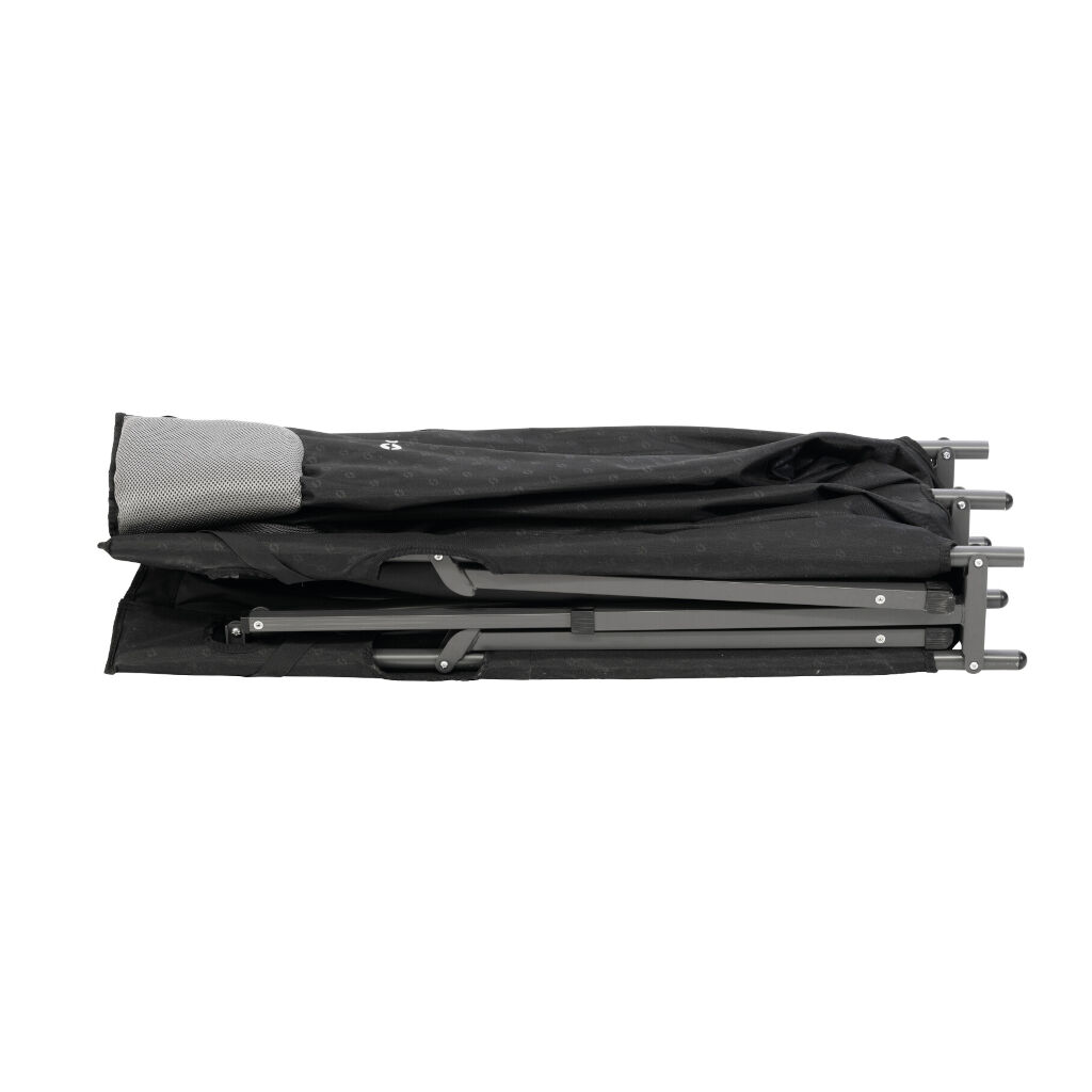 Robuuste dubbele tentbed voor twee personen met een frame van staal en een bed van stevig polyester. Het bed is geschikt voor tentkamperen, kampen of als extra bed thuis. Wordt geleverd met een draagtas met schouderriem voor transport en opslag.