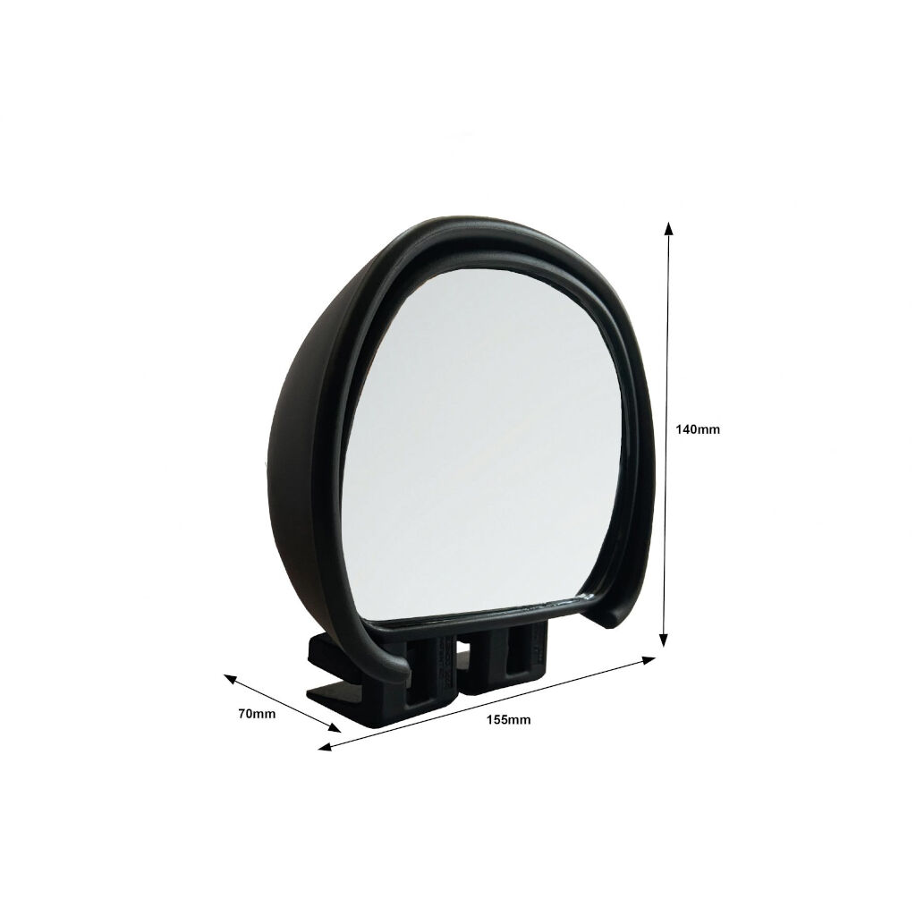 Spiegel die de dode hoek bedekt. Geschikt voor auto's, bestelwagens en campers. Bevestigd op de originele zijspiegel met Milenco's klembevestiging die tussen de spiegel en het frame wordt gemonteerd en aan de buitenkant van het frame, waardoor het op alle soorten zijspiegels past (Gratis retourzending als het niet past).