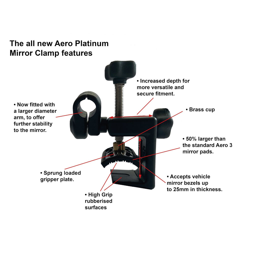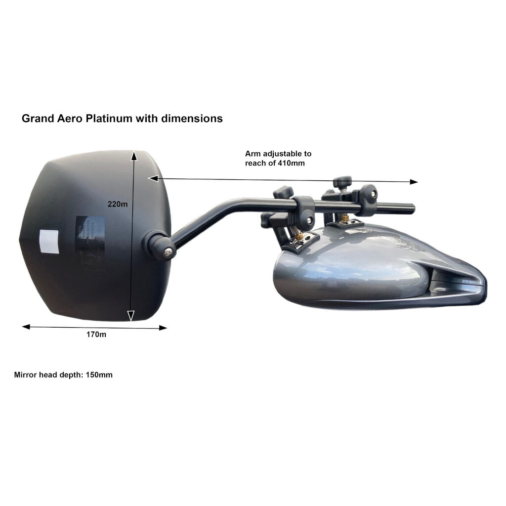 Milenco Grand Aero Platinum is een ontwikkeling van de bestseller Grand Aero 3, die dankzij een nieuwe constructie van de bevestiging ook past op de taps toelopende buitenspiegels die op veel nieuwere auto's te vinden zijn. Met flexibele, rubberen, roestvrijstalen, veerbelaste klemplaten die 50% groter zijn dan op het standaardmodel (Grand Aero 3), biedt het ook een nog stabielere bevestiging. De flexibiliteit van de bevestiging zorgt ervoor dat de klem zowel kan worden gekanteld als gevormd naar het spiegelkader, wat het contactoppervlak aanzienlijk vergroot, zelfs als de vorm van de spiegel taps toeloopt. De platina-klem is ook vergroot en kan nu spiegelkaders tot 25 mm dik aan. Ook de arm is iets groter, zodat deze nu een groter bereik heeft om ook te werken op caravans tot 2,55 meter breed.