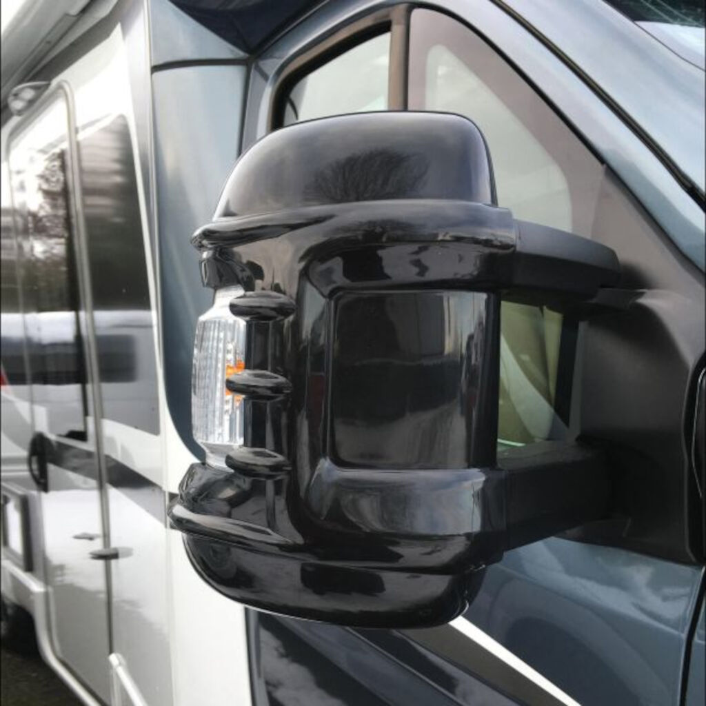 Rugspiegelbescherming die aan de achteruitkijkspiegel van de camper wordt gemonteerd. Een schroef in de bevestiging zorgt ervoor dat deze stevig zit. Voldoet aan alle voertuigveiligheidsnormen. Geschikt voor Fiat Ducato gebouwd sinds 2007 (X250/X290), Peugeot Boxer en Citroën Relay met brede armspiegels.
