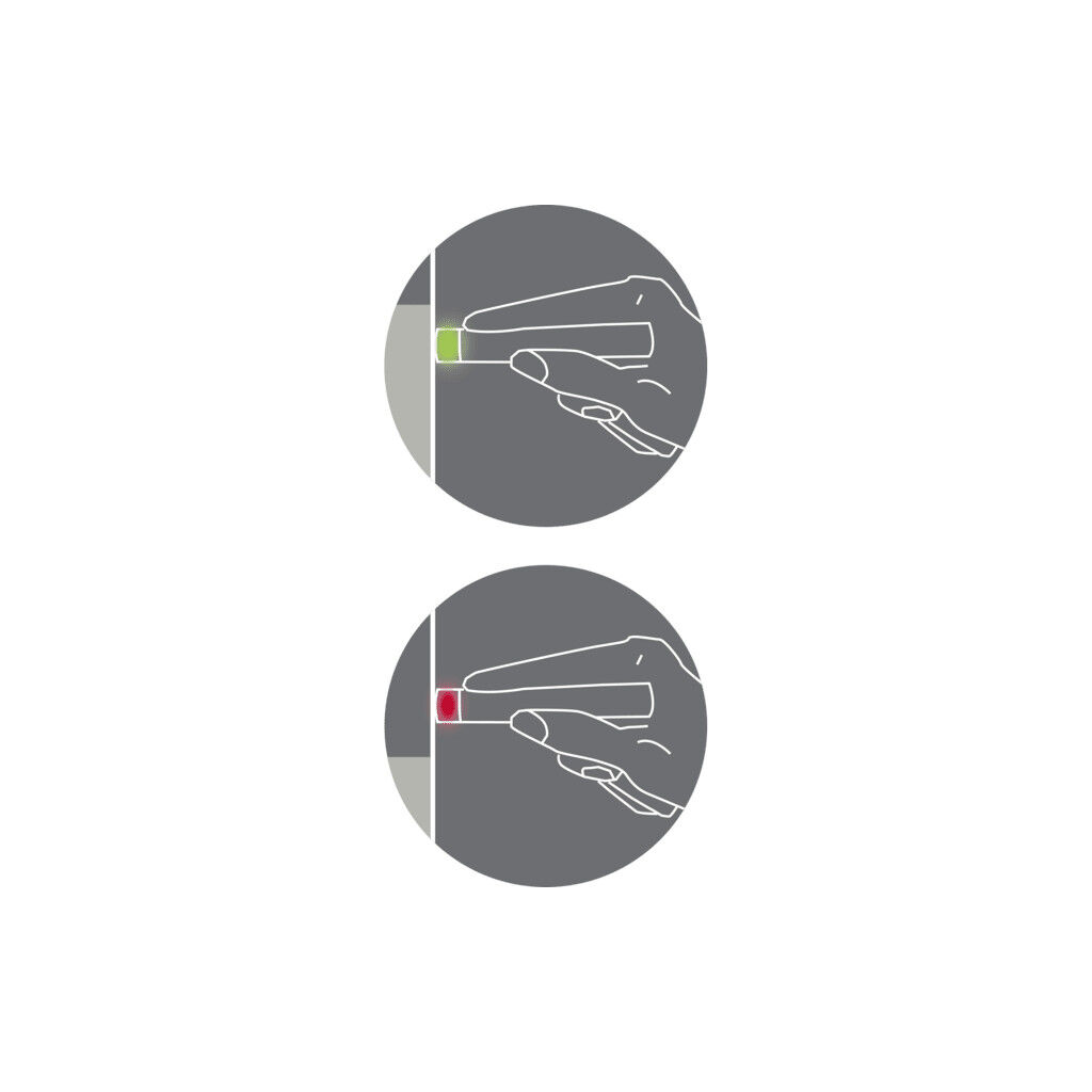 Gasniveau-indicator in zakformaat voor standaard gasflessen met propaan of butaan. De niveau-indicator geeft betrouwbare metingen en kan in de zak worden opgeborgen omdat hij zo klein en licht is. Eenvoudig te gebruiken - druk gewoon een van de korte zijden in een hoek van 90 graden tegen de gasfles en een LED-lampje brandt groen of rood als er gas op dat niveau is.