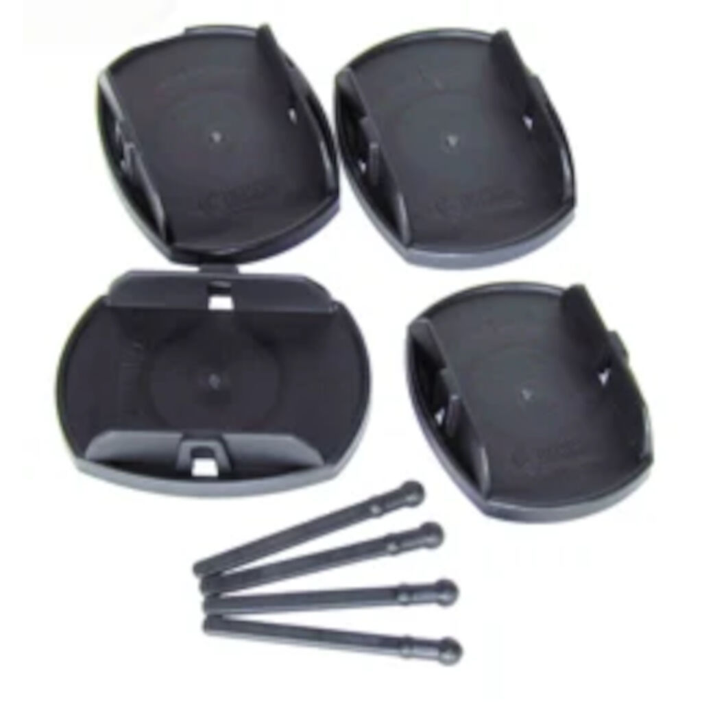 Steunplaat die voorkomt dat de steunpoten van de caravan wegzakken in zachte of natte grond. De steunplaat biedt ook extra stabiliteit aan de caravan. Set van 4 stuks.