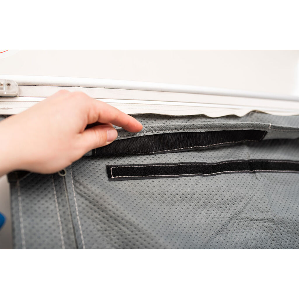 - Eenvoudig te bevestigen via de lijst van de caravan met elastische spanners aan de onderkant (inbegrepen)