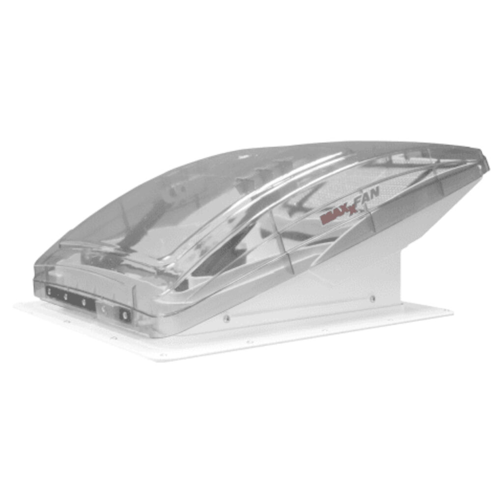 Elektrisch dakluik van Maxxfan met ingebouwde regenkap die ervoor zorgt dat je de ventilator in alle weersomstandigheden kunt gebruiken. Het dakluik wordt geleverd met ventilatie, ventilator en beschermkap in één unit en kan eenvoudig worden geïnstalleerd in een recreatievoertuig.