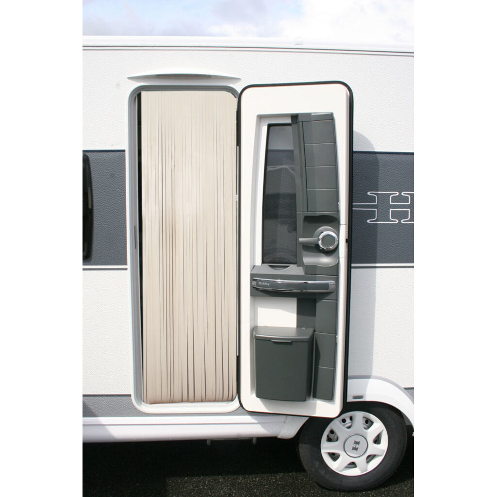 Elegant gordijn in kunstleer dat op de gewenste lengte kan worden geknipt met een schaar. Perfect voor de camper of caravan.