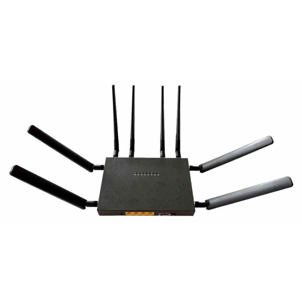 | Overige specificaties | WiFi 6-snelheid: tot 3000 Mbps Max. aantal aangesloten apparaten: 128 stuks SIM-kaartsleuven: 2 stuks (dual SIM) Ingangsspanning: 9–36 V Antenne-array: 4 antennes voor 5G/4G, 2 antennes voor 5,8 GHz WiFi, 2 antennes voor 2,4 GHz WiFi |