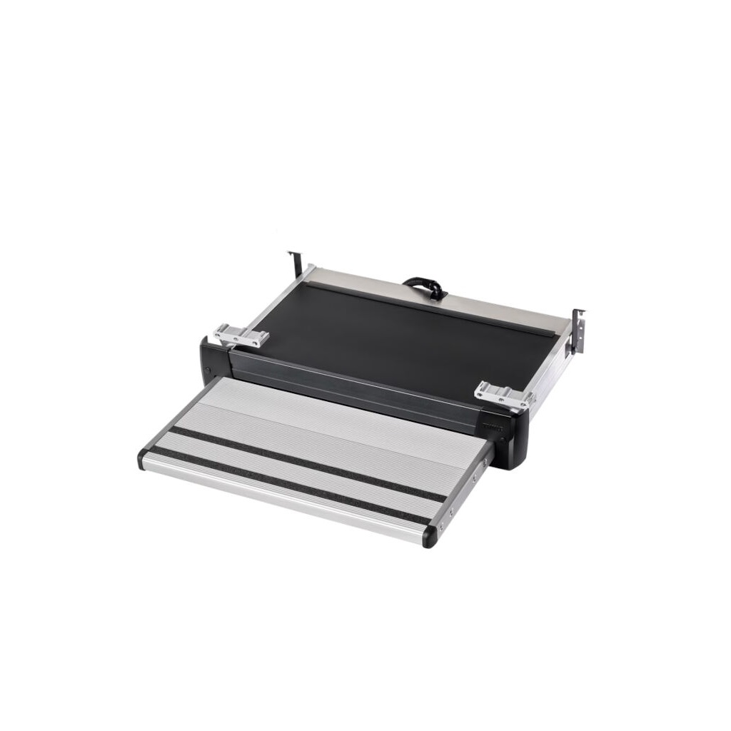 Stabiele automatische treden van Thule die uitschuiven voor eenvoudige en veilige toegang tot het voertuig. Wordt bediend met een schakelaar en wordt in- en uitgeschoven via een 12V motor.
