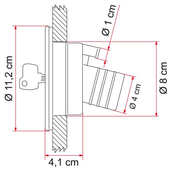 Komplette Füllklappe für den Frischwassertank von Fiamma. Wird mit Schloss und zwei Schlüsseln geliefert.