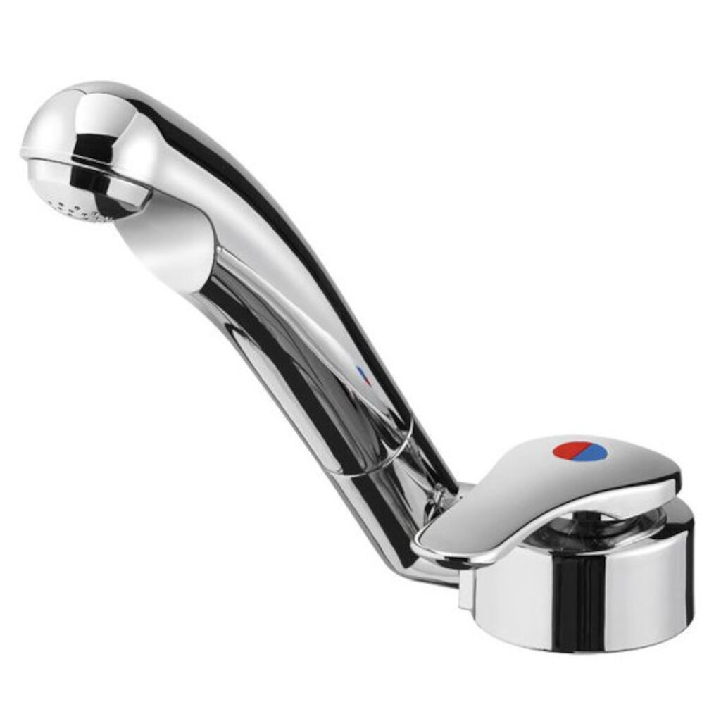 Keukenkraan voor caravans en campers van het Duitse merk Reich, met een lange uitloop die slechts 40 mm uitsteekt, waardoor deze geschikt is voor spoelbakken met deksel. Een keramische cartridge zorgt voor een lange levensduur en kan eenvoudig worden vervangen bij problemen met de afdichting.