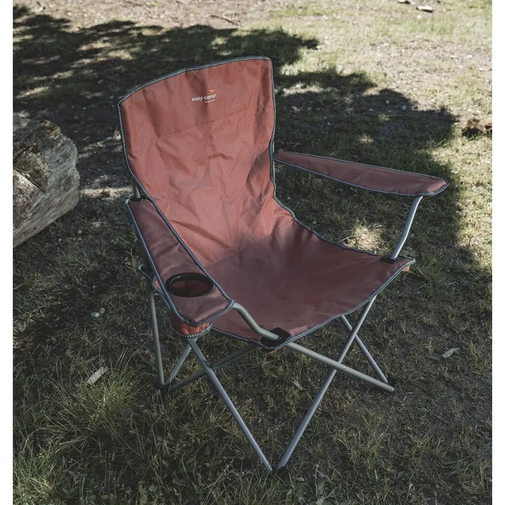 De Spruce Arm Chair Clay Red is een stevige en opvouwbare stoel, perfect voor kamperen, het strand of de tuin. Het robuuste stalen frame biedt stabiliteit, terwijl de brede armleuningen en een bekerhouder extra comfort geven.
