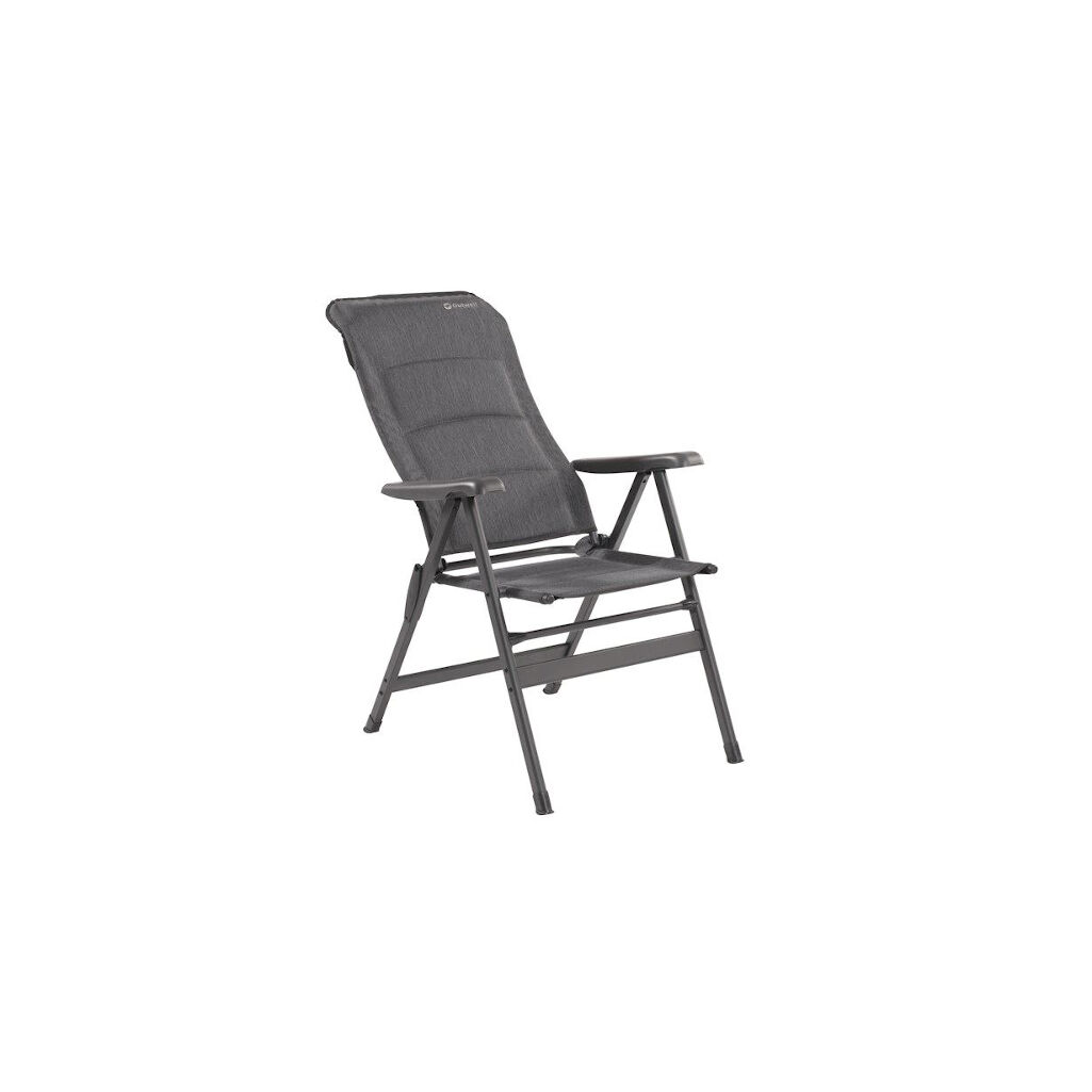 Campingstoel van Outwell met hoge rugleuning en zeer zachte en duurzame stof met vulling. De zachte vulling en een rugleuning met zeven standen zorgen voor een goed comfort zowel aan de eettafel als in de zon. Een stevig frame van gepoedercoat aluminium zorgt ervoor dat de stoel een maximale belasting van 150 kg heeft. De stoel wordt geleverd met 3 jaar garantie.