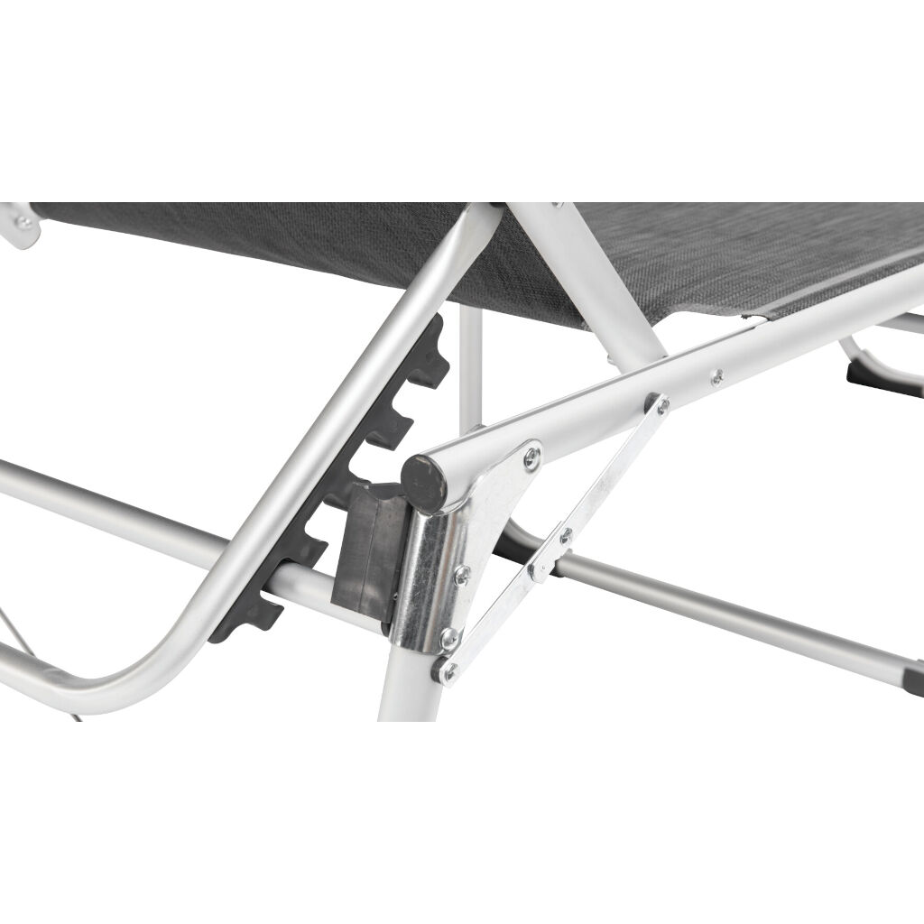 Stabiele, extra brede, hoge en lange zonneligstoel met een frame van aluminium dat het gemakkelijk maakt om mee te nemen. Sterke stof in textiline die ook zeer bestendig is tegen UV-licht. De rugleuning kan in 5 verschillende posities worden ingesteld. Afneembaar kussen inbegrepen.