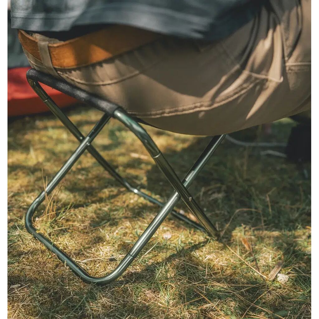 Kleine stevige kruk of voetenbank. Zeer compact in te pakken, wat het perfect maakt voor wandelen, jagen, vissen of om een zitplaats buiten de tent te hebben.