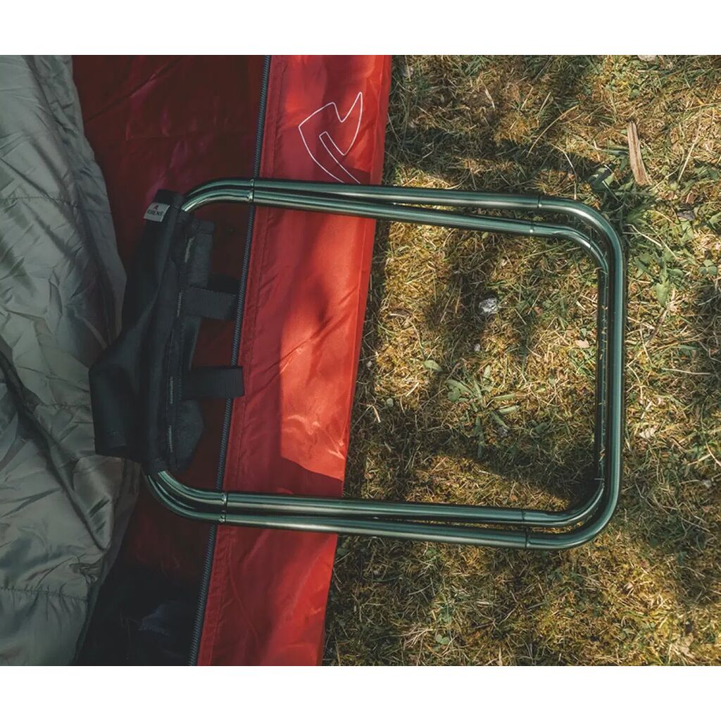 Kleine stevige kruk of voetenbank. Zeer compact in te pakken, wat het perfect maakt voor wandelen, jagen, vissen of om een zitplaats buiten de tent te hebben.