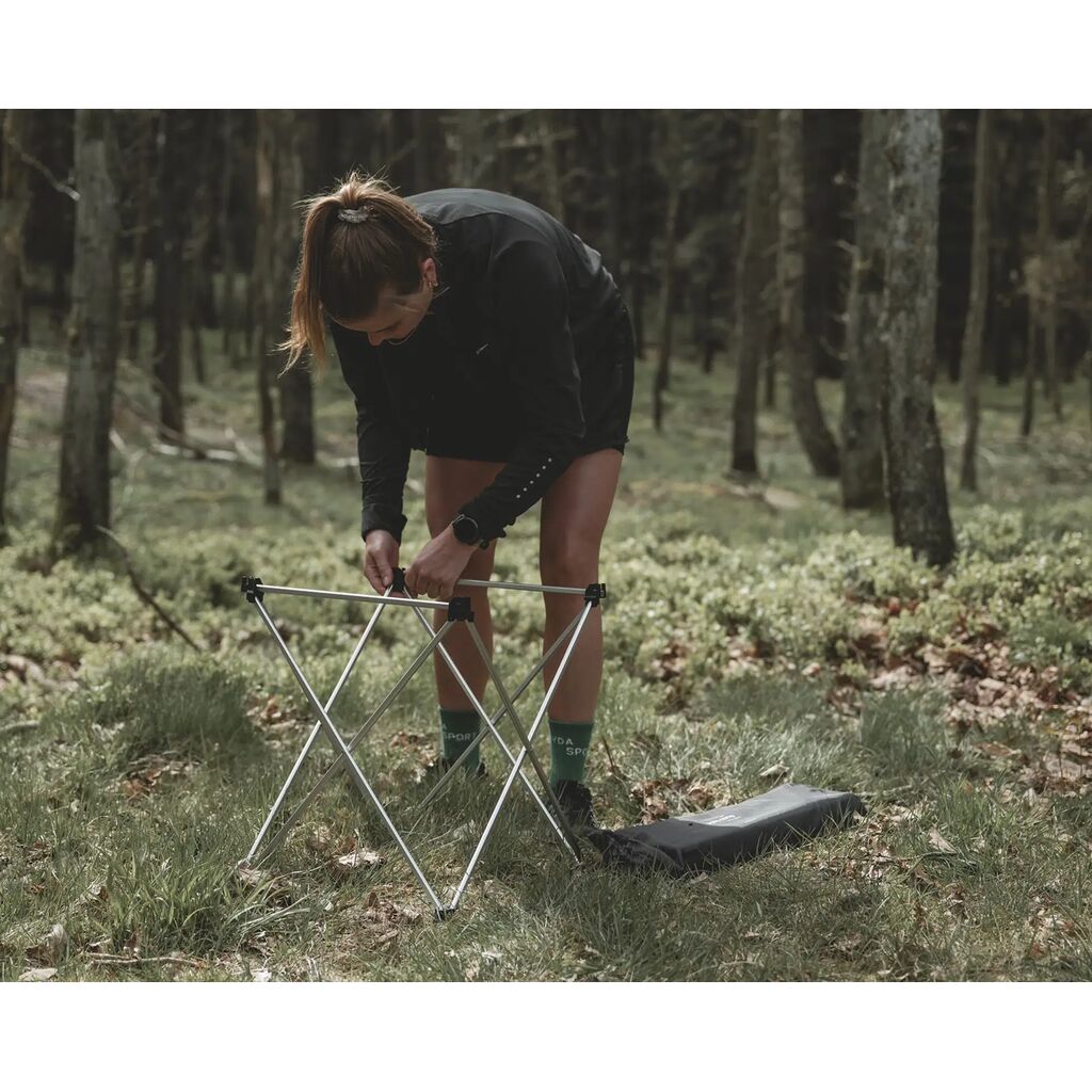 Sammenklappeligt bord med en aftagelig bordplade bestående af lameller/plader, som rulles sammen og giver bordet en meget lille pakkestørrelse. Perfekt til teltcamping, hvor man kun har bilen at pakke i. Inkl. taske til transport og opbevaring.
