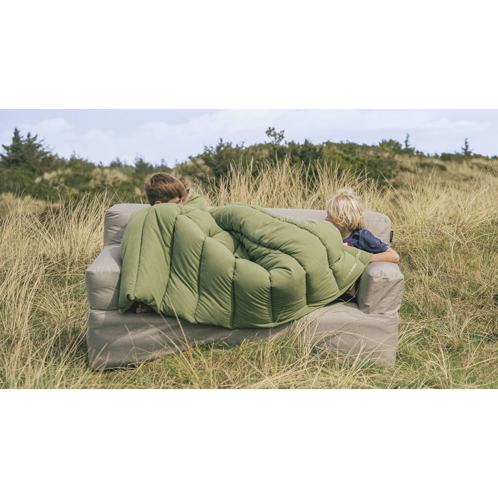 Comfortabele opblaasbare bank met een duurzaam afneembare stoffen hoes die zowel in de tent als buiten goed werkt. De bank heeft een comfortabele vulling in de zitting en rugleuning en is gemakkelijk op te blazen met een gewone luchtbedpomp.