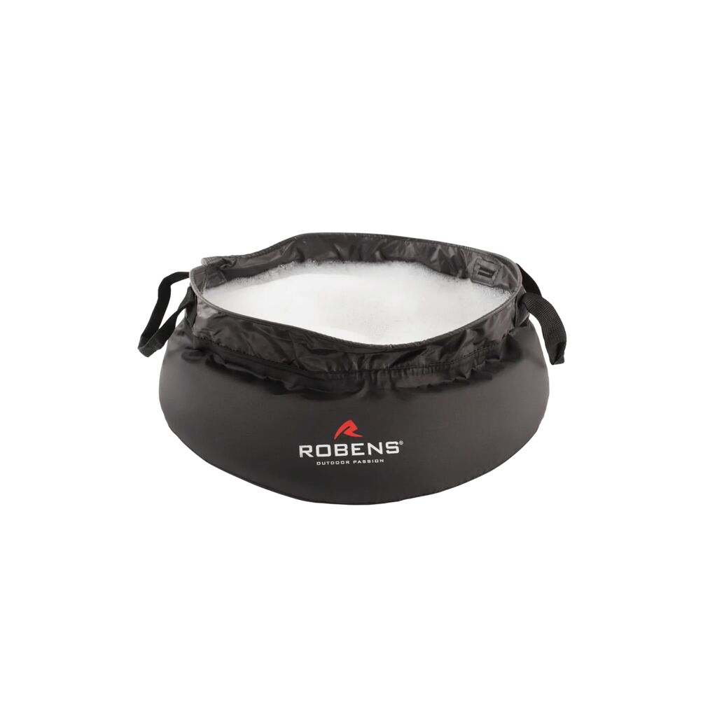 Veelzijdige opvouwbare bak van sterk nylon, geschikt voor bijvoorbeeld het vervoeren van water, afwassen of persoonlijke hygiëne (bestand tegen warm water en reinigingsmiddelen). De bak heeft een inhoud van 10 liter en een stevige bodem en sterke handgrepen om hem te dragen.