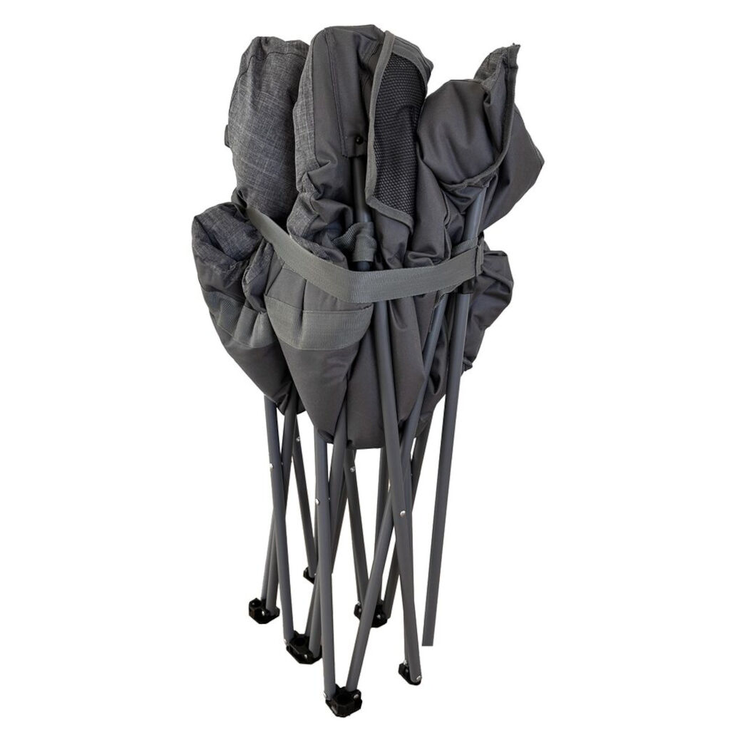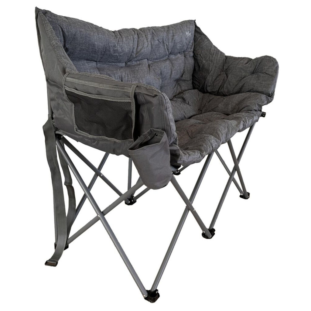 Opvouwbare campingbank van Smart Living in duurzame materialen met goed zitcomfort. Gevoerde zitting en rugleuning en comfortabele armleuningen zorgen voor een goede zitervaring. Vouwt in enkele seconden op en in, draagtas inbegrepen voor gemakkelijke opslag en transport. Perfect voor de kampeervakantie.