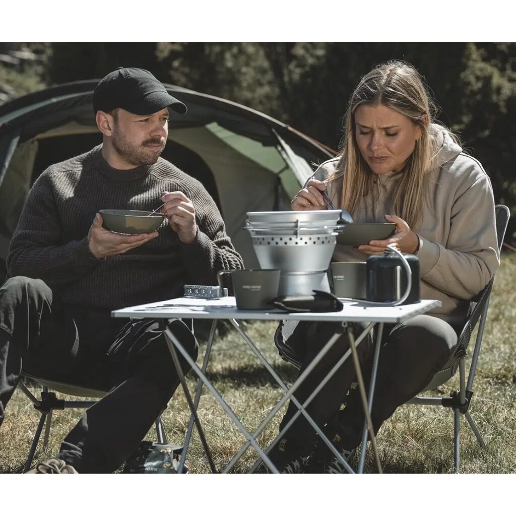 | Dit is inbegrepen | 2 pots (1.3 L / 1.5 L), 1 pan 20.5 cm, 1 gripper, Gas burner, Stable pot holder and windshield |