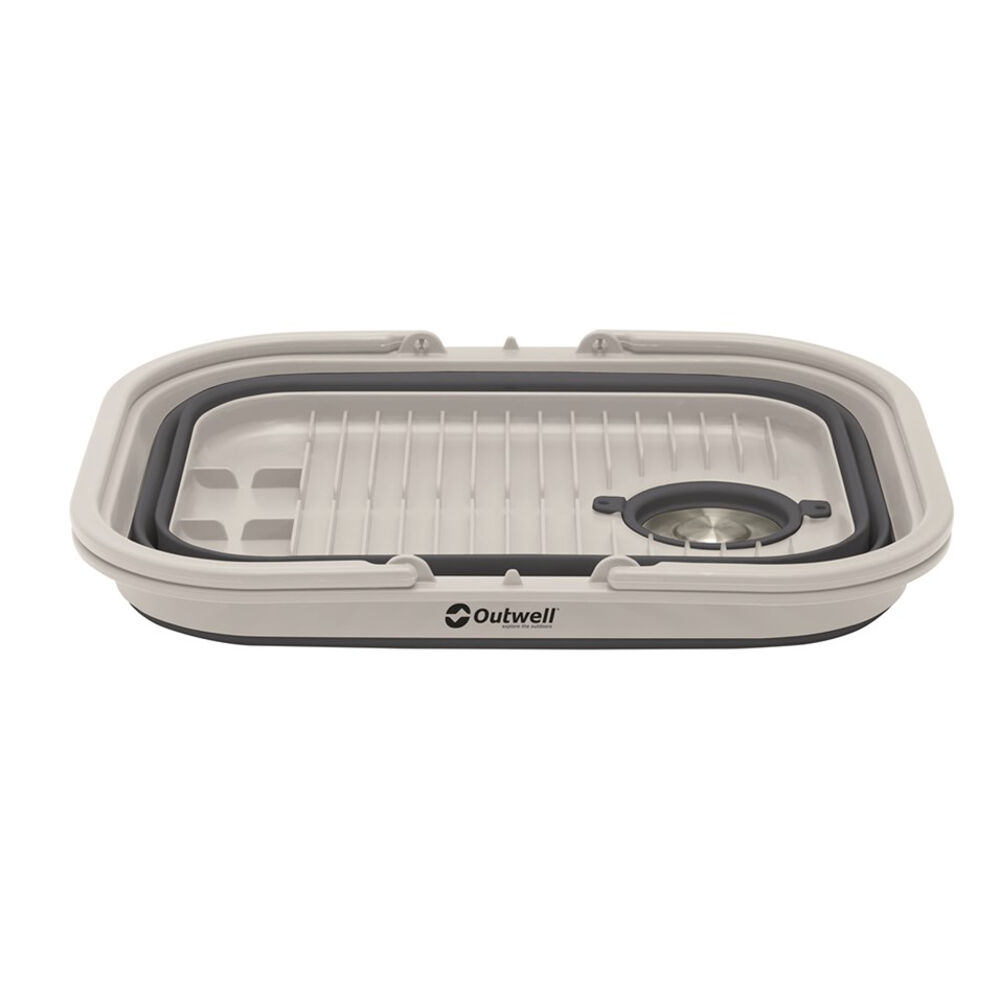 Handige inklapbare afwasbak met ingebouwde afvoer met stop en met deksel en handvat. Een slimme functie is een ingebouwde bordenhouder die het drogen van de vaat vergemakkelijkt. Je kunt de vaat verplaatsen, afwassen en ook drogen in de afwasbak. Wanneer het niet gebruikt wordt, kan het ingedrukt worden en is het dan slechts 6 cm hoog. Perfect voor alle kampeerders.
