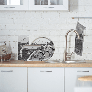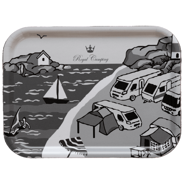 Zweeds geproduceerde dienblad met kampeermotief. Gemaakt van berkenfineer. Vaatwasserbestendig.