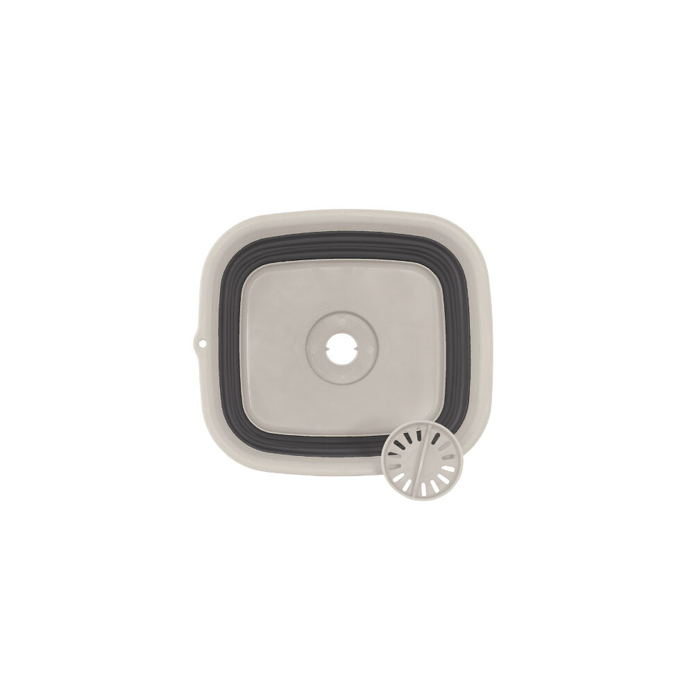 Handige inklapbare afwasbak met ingebouwd afvoer en stop. Wanneer het niet in gebruik is, kan het ingedrukt worden tot slechts 7 cm hoog, wat het makkelijk maakt om mee te nemen op de camping.