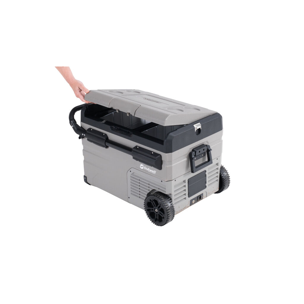 Stevige compressor-aangedreven koelbox met dubbele compartimenten waar de temperatuur individueel kan worden geregeld, zodat het ene compartiment als vriezer en het andere als koelkast kan worden gebruikt indien gewenst. De koelbox kan zowel via 12V (Auto) als 230V worden aangedreven en wanneer er geen elektriciteit is, via een extra batterij (accessoire). De batterij kan een temperatuur van +5°C tot 20 uur handhaven. De temperatuur in elk compartiment kan eenvoudig worden ingesteld tussen +20°C en -20°C via het paneel of via de Outwell-app.