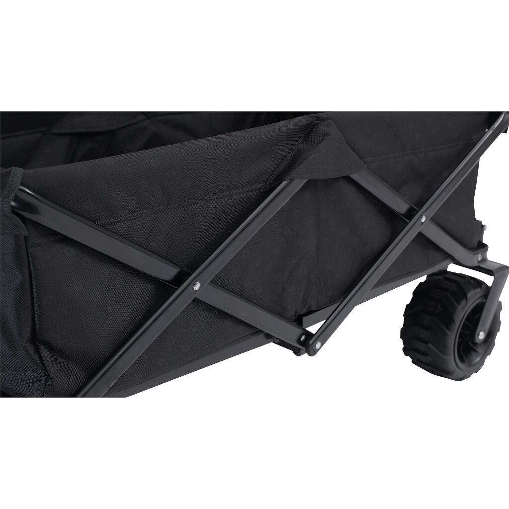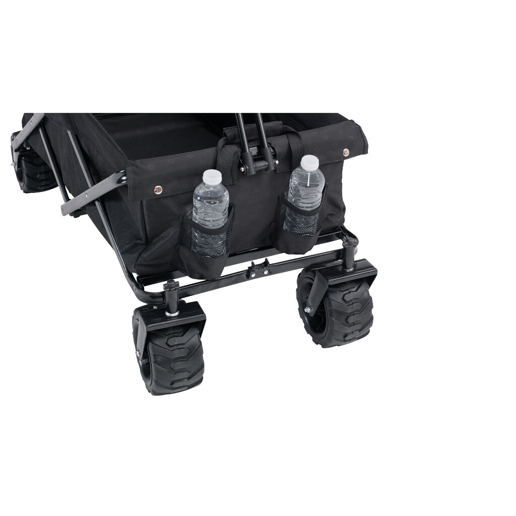 Transportkar met langer handvat en extra grote wielen. De brede banden zorgen ervoor dat hij ook op zand werkt. Perfect voor kampeeruitrusting, voor een strandbezoek of om de kinderen een rustpauze te geven tijdens een uitstapje. Eenvoudig op te vouwen voor transport en opslag.