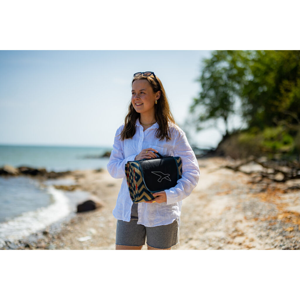 Picknickkleed met een zachte fleece bovenkant in prachtige kleuren en een foliebeklede waterdichte onderkant die ook isolerend is. Ingebouwd handvat maakt het kleed gemakkelijk mee te nemen.