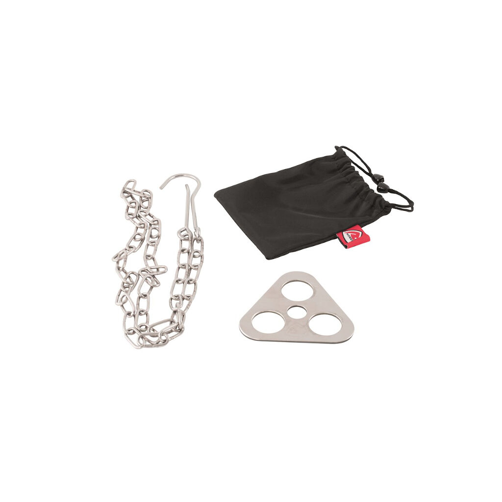 Steek 3 stokken uit de natuur in en buig de poten uit zodat je een zelfgemaakte driepoot hebt, klaar voor koken boven open vuur. Bij de adapter komt een ketting waarmee je de temperatuur/hoogte tot het vuur kunt aanpassen. Eenvoudige en handige manier om je eigen driepoot te maken.