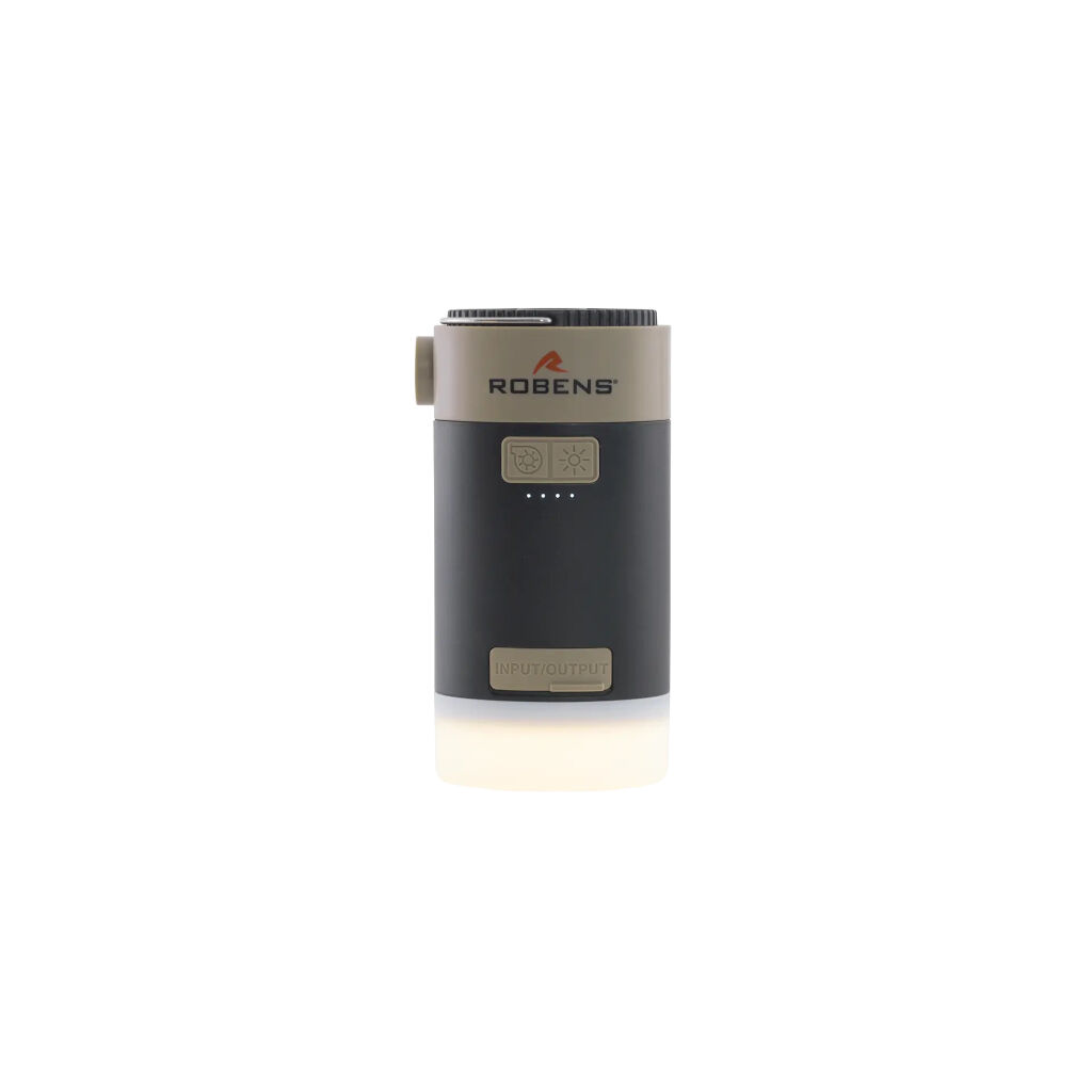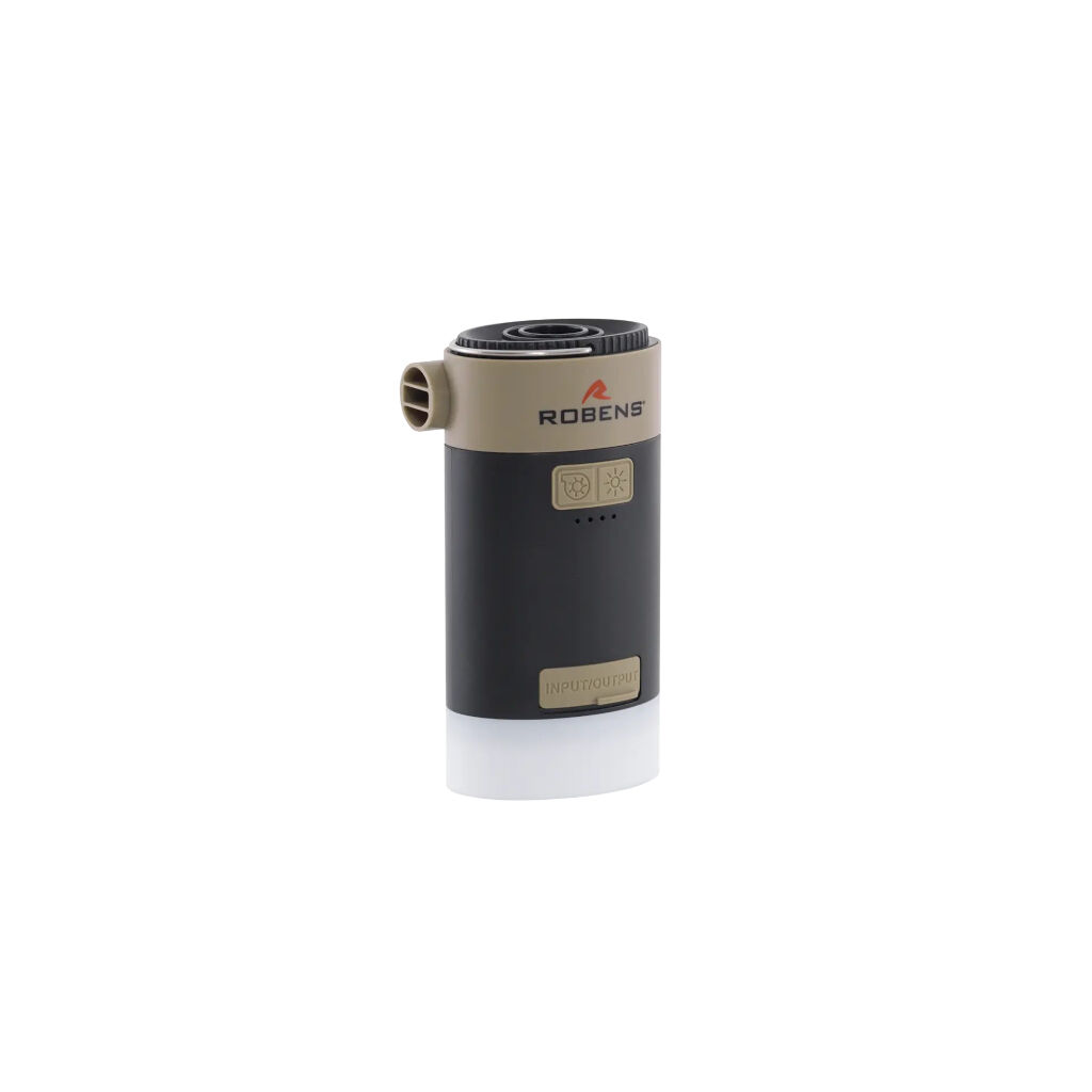 Compacte en duurzame batterij-aangedreven matraspomp die ook functioneert als lamp en powerbank. De pomp kan worden opgeladen via USB-c of het ingebouwde zonnepaneel. Perfect voor het oppompen van slaapmatten, luchtbedden of opblaasbare meubels. Wordt geleverd met 5 mondstukken en een adapter voor Robens slaapmatten en Outwells FHF ventielen. Ingebouwde haak maakt het ook mogelijk om de lamp aan het plafond van de tent te hangen.