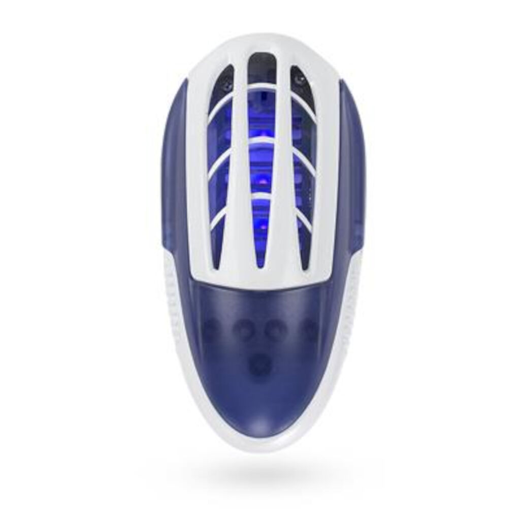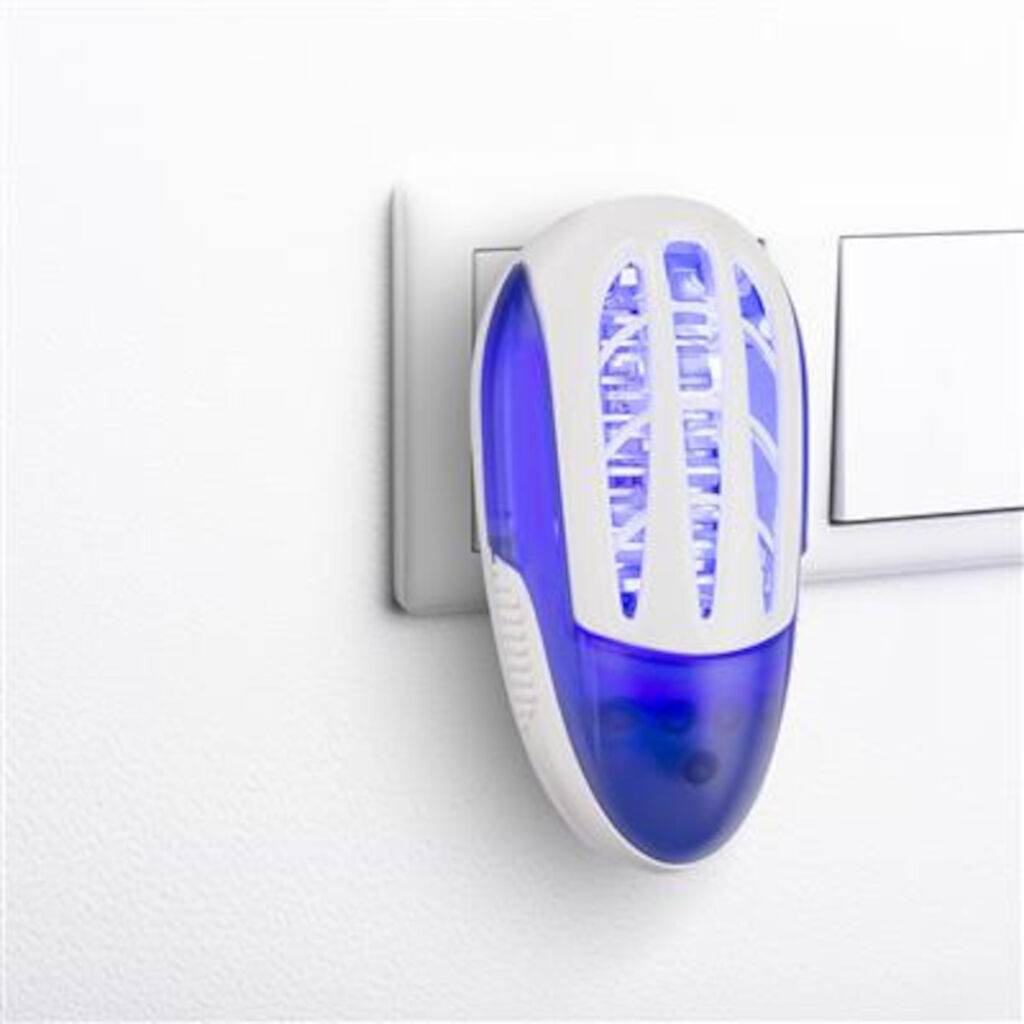 Elektrische insectenverdelger die een gebied van maximaal 12 m² bestrijkt en muggen en andere kleine insecten elimineert. Het licht lokt de insecten naar een elektrisch geladen net waar ze worden gedood. Het product is stil en heeft een afneembare opvangbak voor eenvoudige reiniging. Het is ontworpen voor gebruik binnenshuis en heeft een vermogen van 2,2 W en een oververhittingsbeveiliging.
