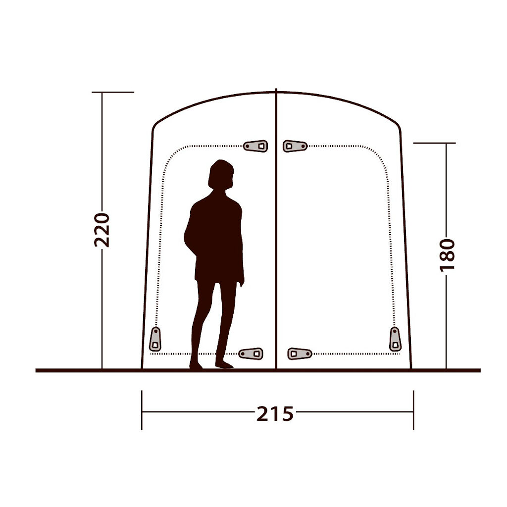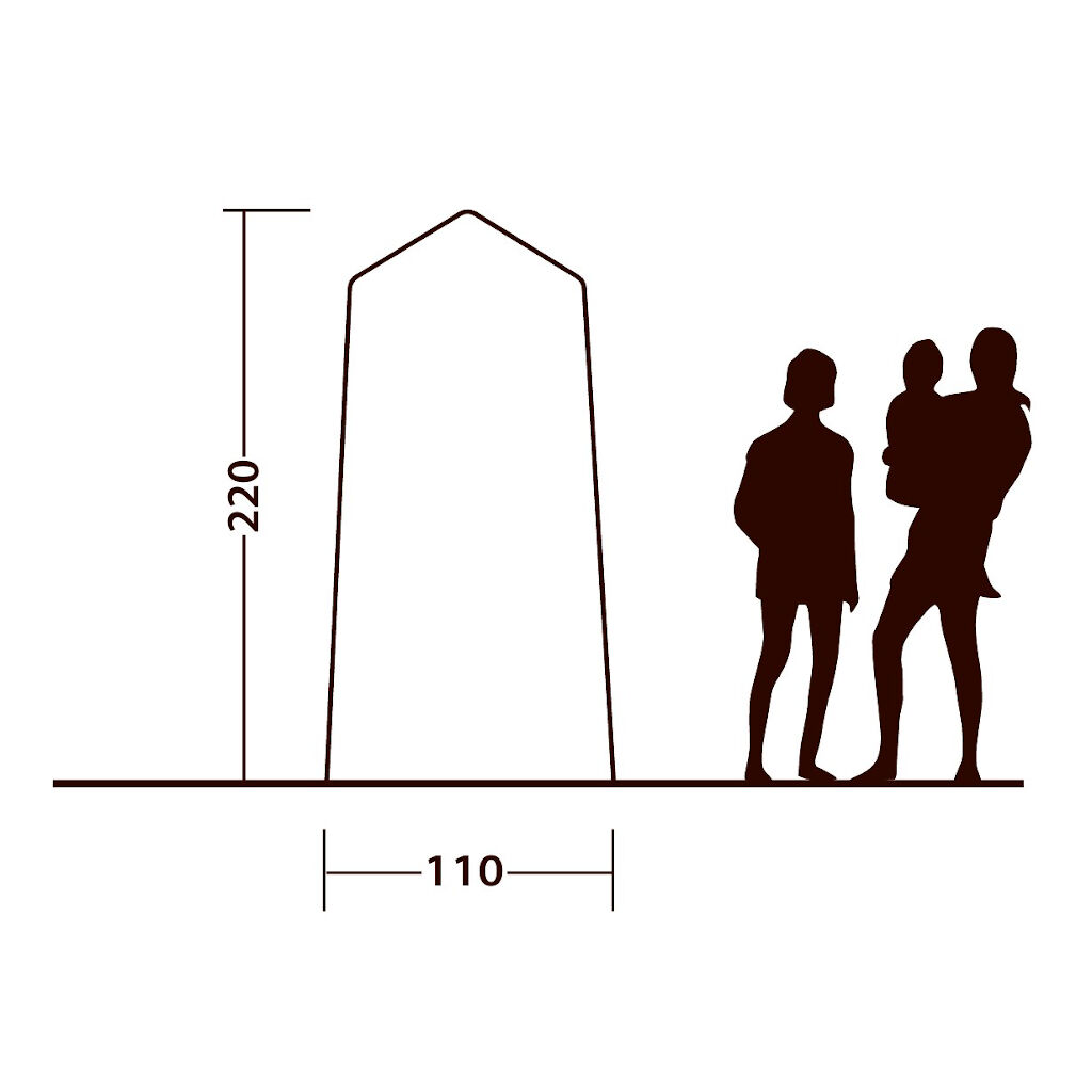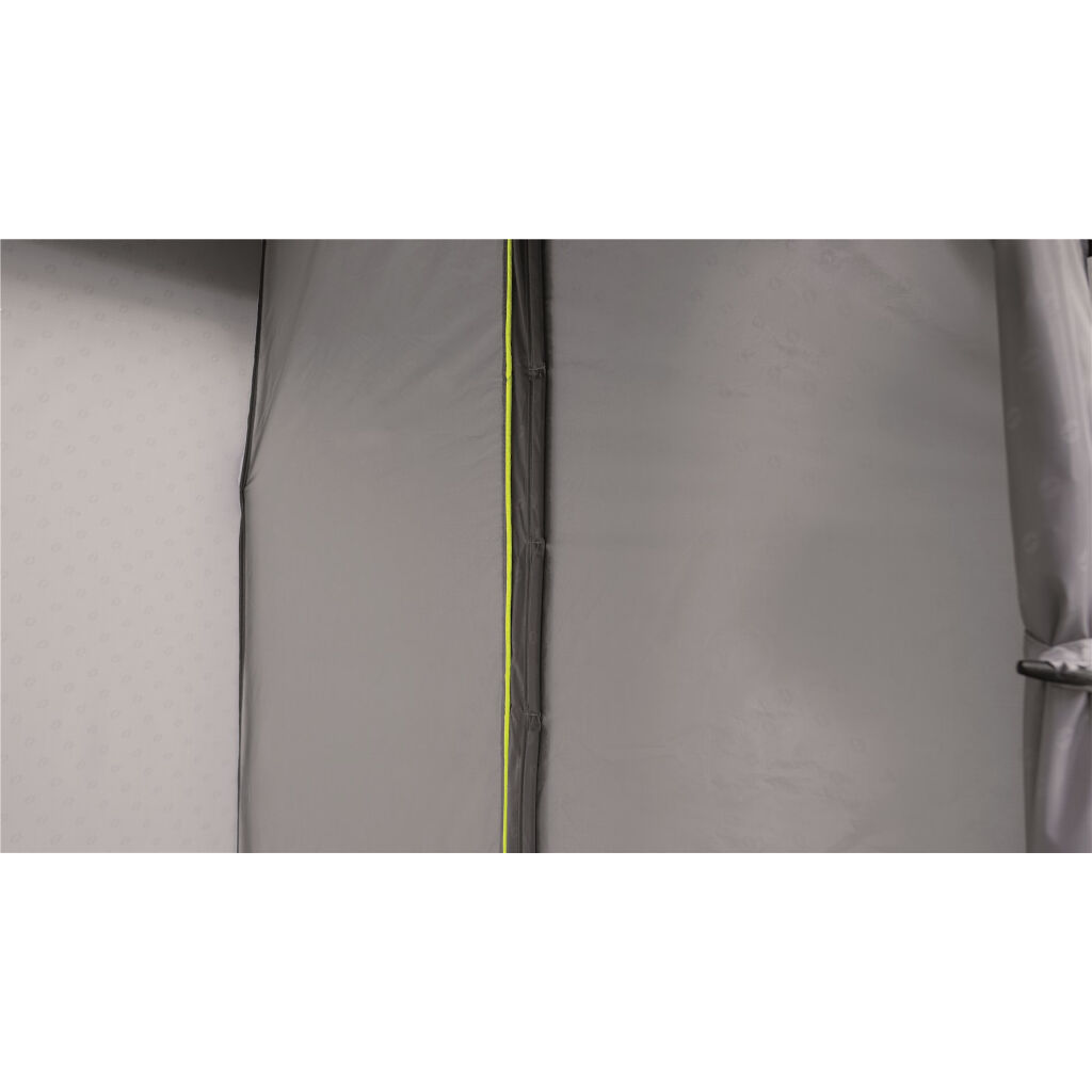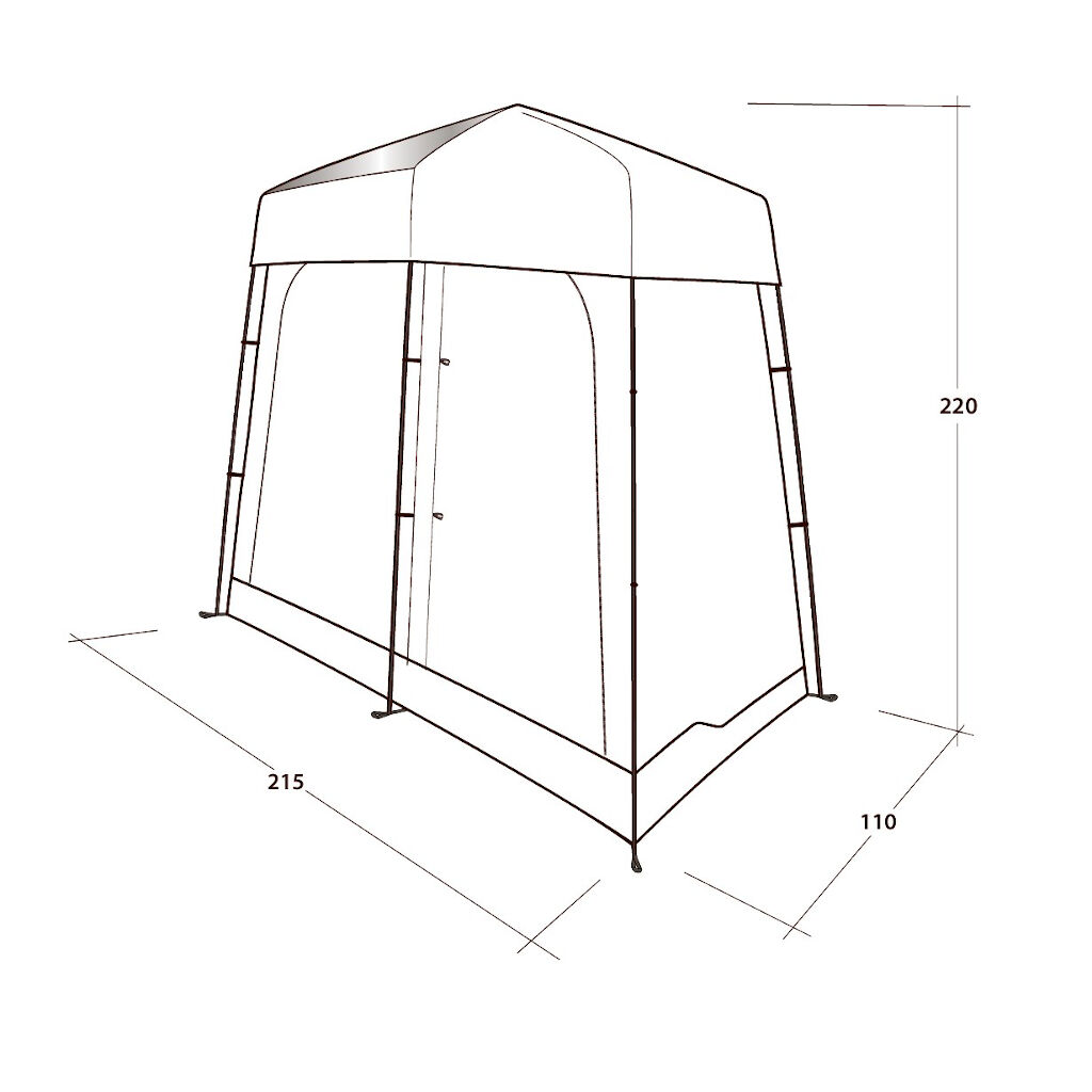 Dubbele douche-/toilettent van 215 x 110 cm van Outwell. Twee kamers bieden bijvoorbeeld de mogelijkheid om zowel een douche als een toilet te hebben, of een kleedruimte en een douche. De tent is doordacht ontworpen met details zoals een douchehouder, opbergvakken, handdoekhouder en een vloer met afwatering. Een slimme detail is de deur tussen de kamers, waardoor je een deel kunt gebruiken voor douchen en het andere deel om je droog om te kleden zonder de tent te hoeven verlaten.