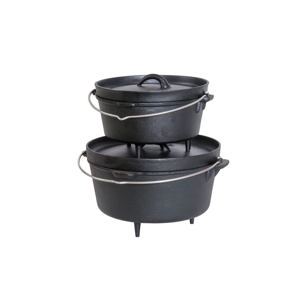 Pot die ook kan worden gebruikt als oven voor zowel koken als bakken. Gebruik het boven het vuur, in de oven of met een sterkere gasbrander. Gemaakt van gietijzer om de warmteoverdracht en warmteverdeling te optimaliseren. De pot is voorbehandeld zodat deze direct uit de verpakking kan worden gebruikt.
