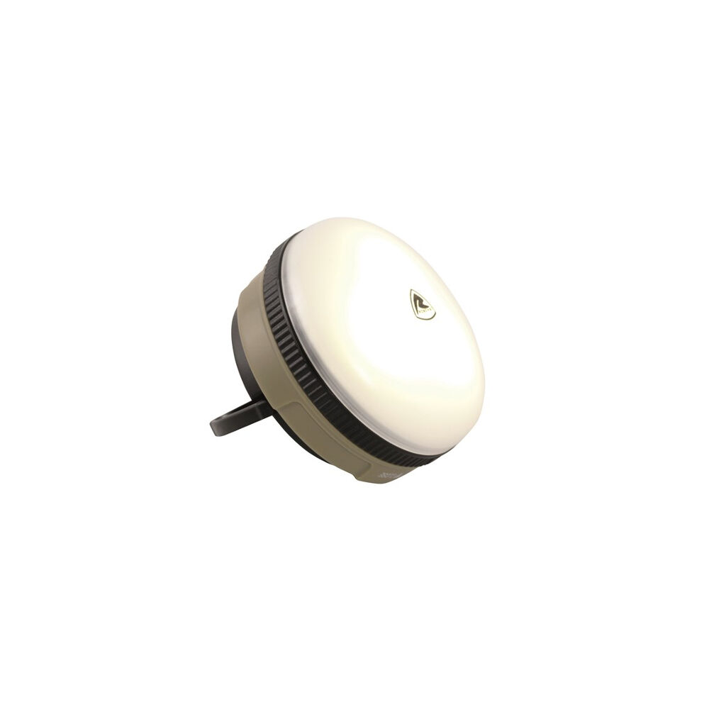 Kleine en lichte campinglamp met ophanghaak voor gebruik als plafondlamp. Werkt op 3 AAA-batterijen.
