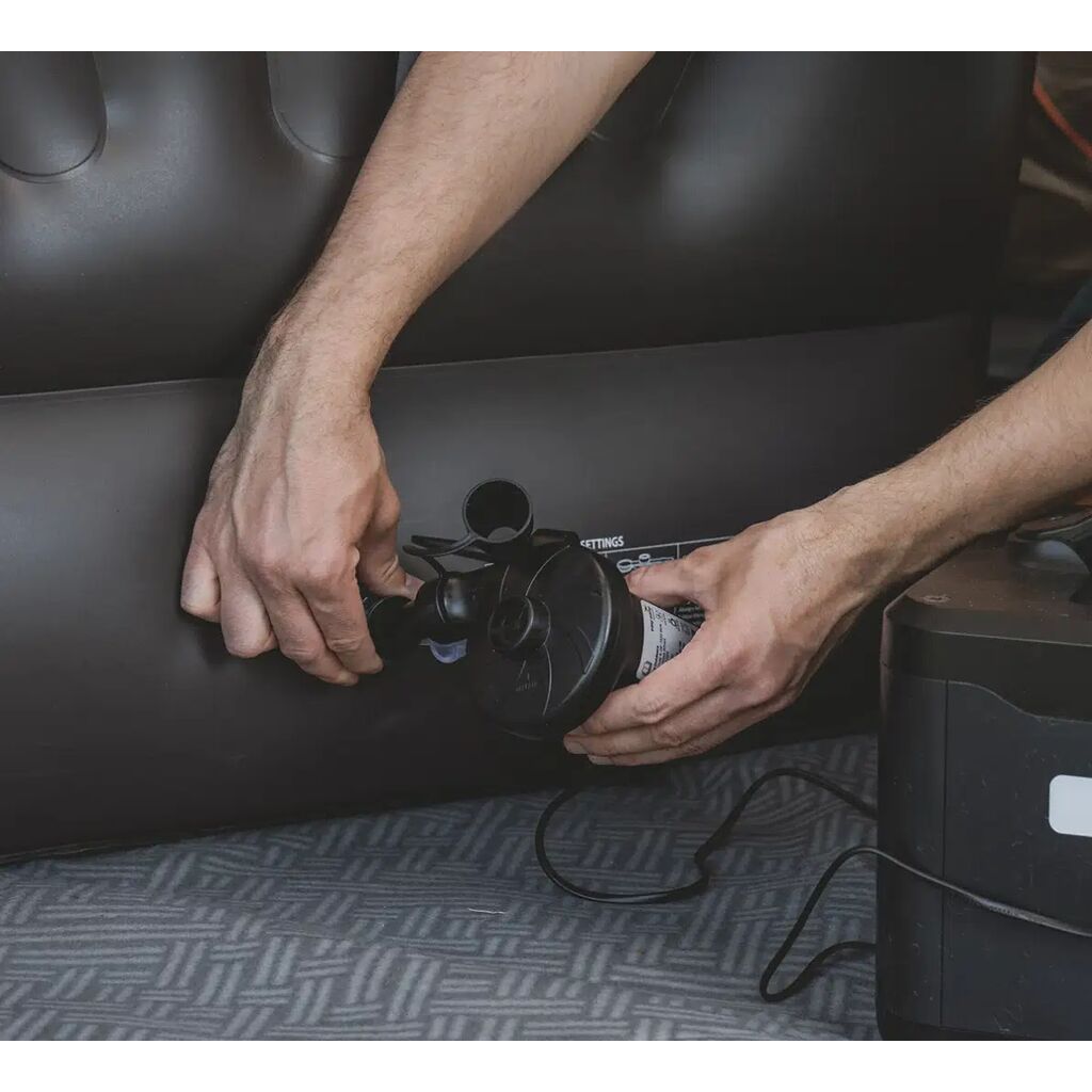De Super Cell 230V pomp van Easy Camp beschikt over zowel een opblaas- als leegzuigfunctie. Aangesloten op een standaard 230V AC-stroombron met 230V-stekker levert hij een capaciteit van 233 liter per minuut.