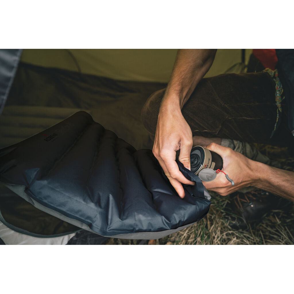 Groter opblaasbaar slaapmatje met een isolerende laag aan de bovenkant. 8 cm dik met een horizontaal kanaalontwerp biedt zowel een goede gewichtsverdeling als bescherming tegen oneffenheden in de grond. Buitenlaag van duurzaam gerecycled polyester met een soft-skin oppervlak voor een goed gevoel.