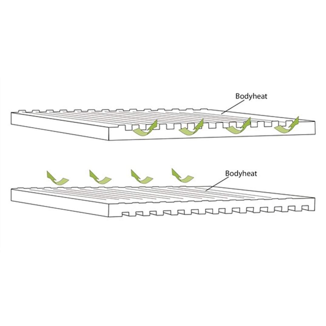 7,5 cm dik dubbel zelfopblazend slaapmat met stevige schuimvulling die een zeer bedachtige sensatie en betere stabiliteit aan de randen biedt. Een slimme oplossing is dat het verschillende isolatie biedt, afhankelijk van welke kant je naar boven legt. Dat wil zeggen, een kant met betere ventilatie voor de zomer en een met betere isolatie voor het koudere deel van het kampeerseizoen.