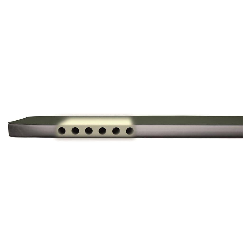 Dubbel zelfopblazende slaapmat van 7,5 cm met statische zijkanten die goede ondersteuning bieden tot aan de rand. Door het gebruik van horizontale luchtkanalen worden gewicht en pakmaat laag gehouden. Outwells FHF Ventiel (Flat High-Flow) zorgt voor een snellere vulling, eenvoudigere leegloop en steekt niet uit de matras. De slaapmat wordt geleverd met een draagtas met schouderriem.