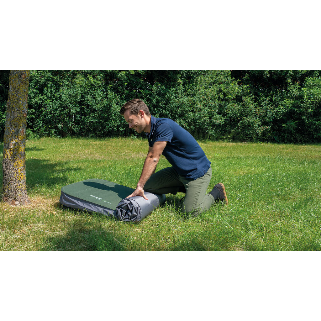 Outwell Dreamhaven is een zelfopblazend slaapmatje met een dikkere schuimvulling en 3D-vormige zijkanten, wat zorgt voor betere stabiliteit, zelfs aan de randen. Goede isolatie maakt het geschikt voor kamperen het hele jaar door. Om het comfort verder te verbeteren, heeft het een aangenaam polyester materiaal aan de bovenkant. De hoogstroomventiel van Outwell zorgt ervoor dat het snel en eenvoudig opblaast. Plaats de mat gewoon op de grond en open de ventielen, zodat het zichzelf binnen een paar minuten vult.
