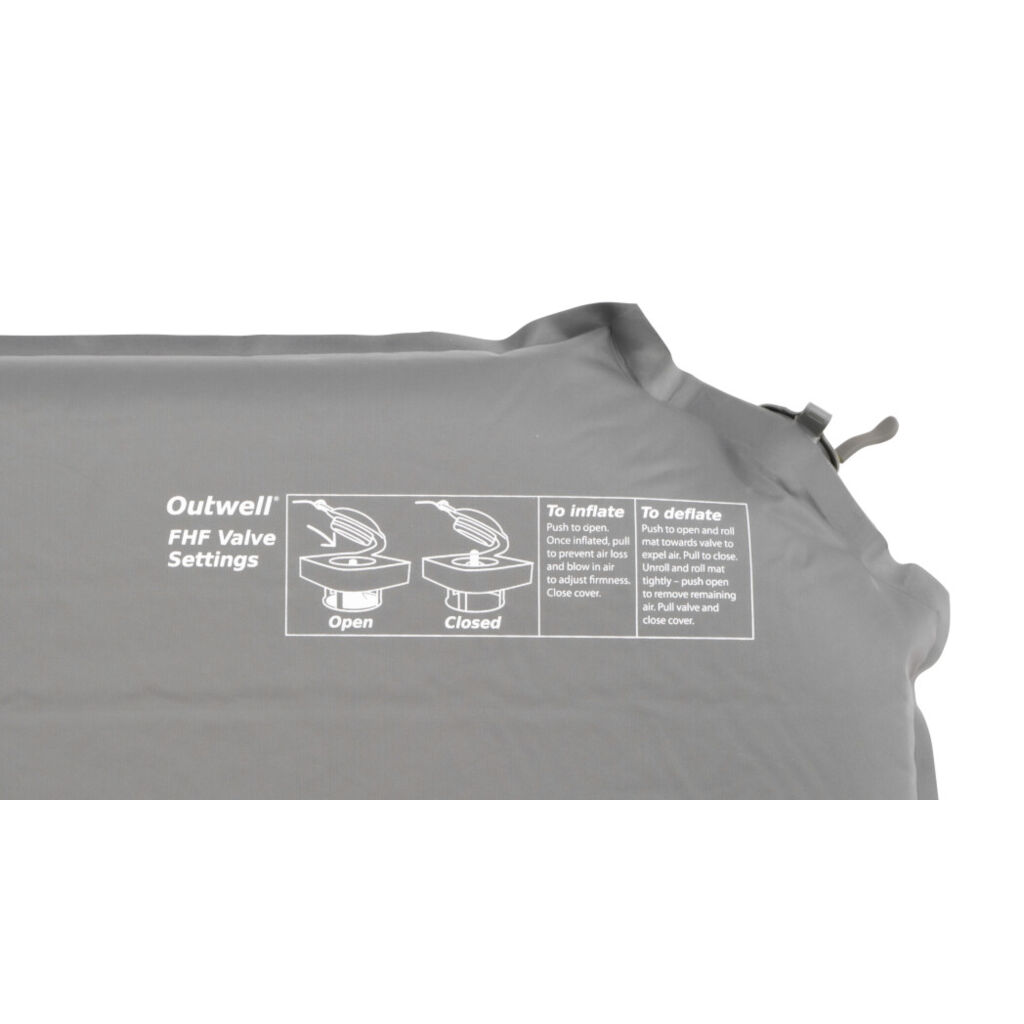 Zelfopblazende slaapmat van Outwell die voornamelijk geschikt is voor kamperen, maar ook voor andere activiteiten omdat het relatief compact is voor zijn formaat. Dankzij een efficiënte ventiel blaast het snel op. Plaats de mat gewoon op de grond en open het ventiel zodat het zichzelf in enkele minuten vult. Blaas het laatste beetje lucht erin om het stevig te maken.