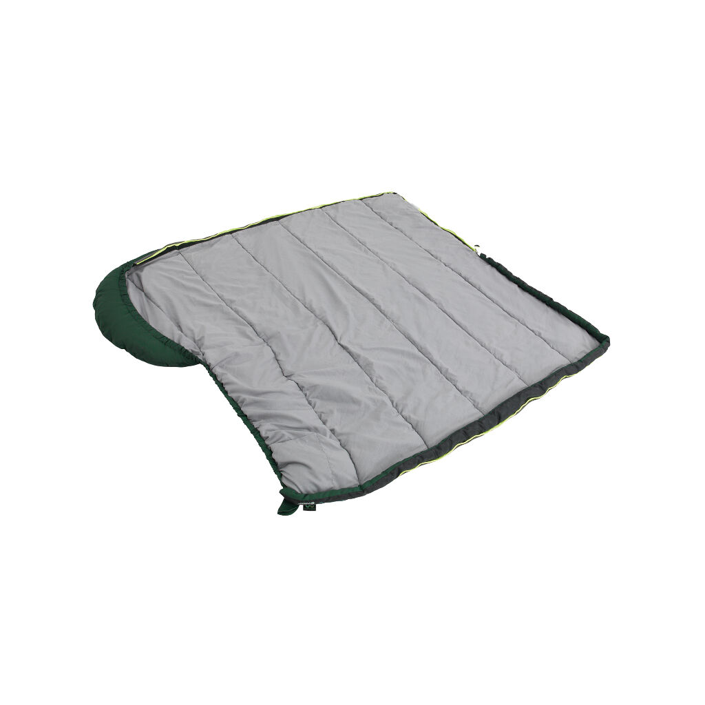 Kinderslaapzak geschikt voor het hele tentkampeerseizoen. De slaapzak heeft een dubbele laag vulling, een aantrekbare capuchon en een rits met een beschermende flap die beschermt tegen tocht. De rits kan volledig geopend worden zodat de slaapzak als deken gebruikt kan worden, en kan ook aan het voeteneind geopend worden om de temperatuur in de slaapzak te verlagen tijdens warmere nachten.