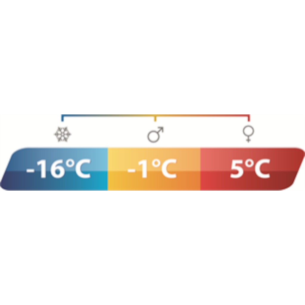 Komforttemperatuur man/vrouw: -1°C / +5°C