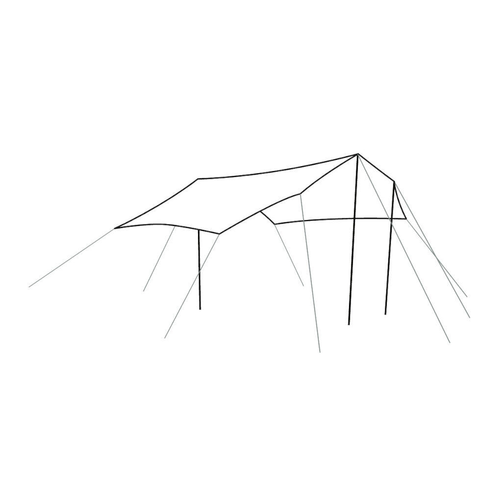 - Monteer als zonnedak op de tent of vrijstaand als tarp