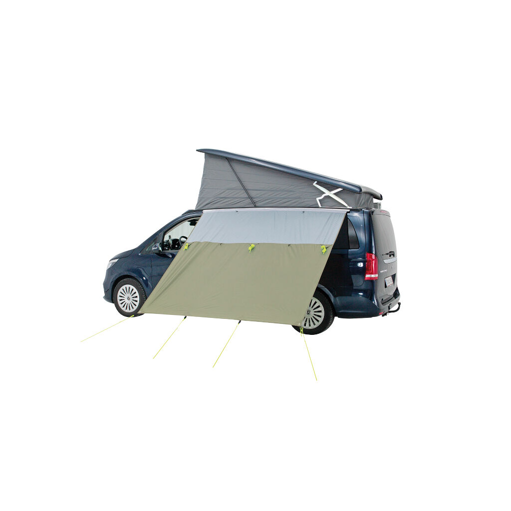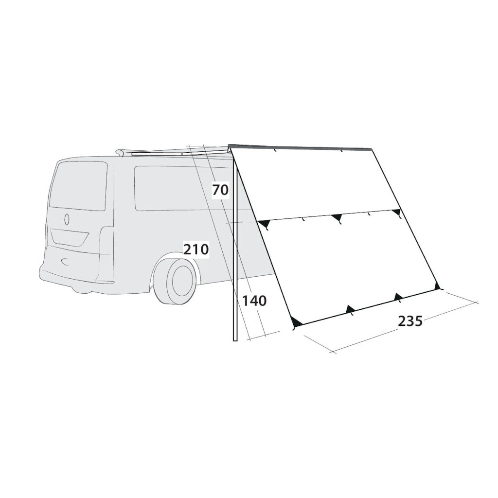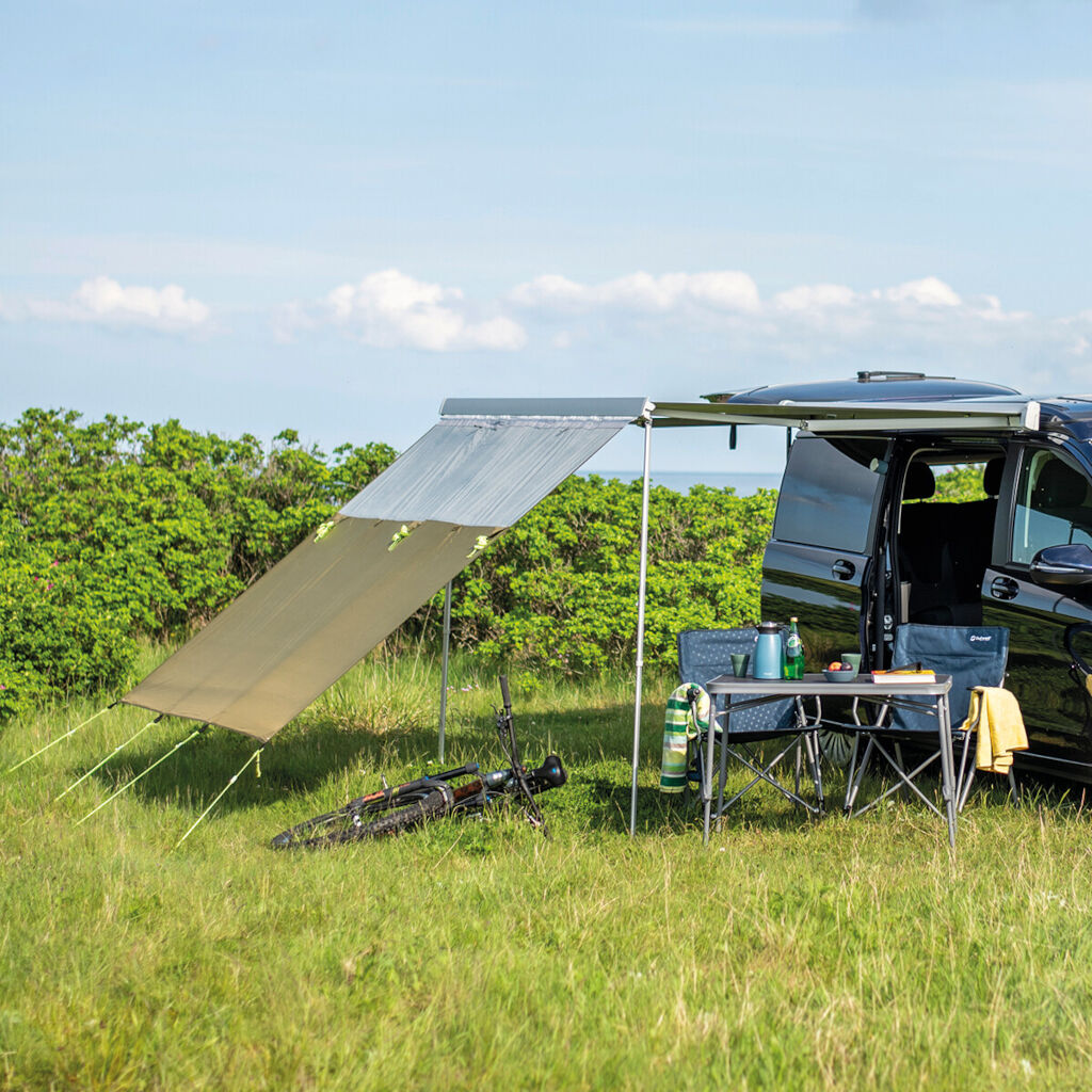 Outwell Hillcrest Tarp is een flexibel zonnescherm dat bescherming, schaduw en privacy biedt. Het wordt eenvoudig gemonteerd aan de voorkant van de luifel en kan worden aangepast met stangen of extra zijpanelen voor extra bescherming.