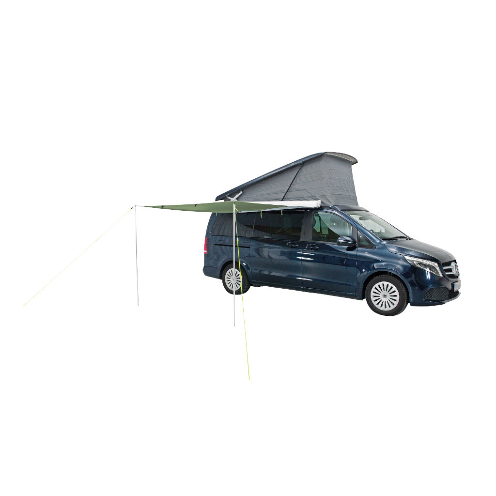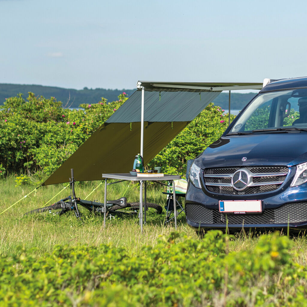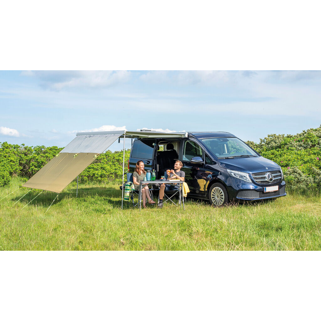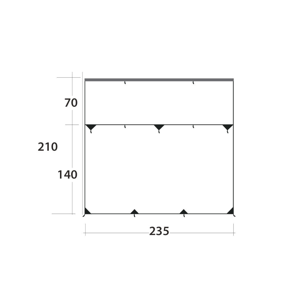 Outwell Hillcrest Tarp is een flexibel zonnescherm dat bescherming, schaduw en privacy biedt. Het wordt eenvoudig gemonteerd aan de voorkant van de luifel en kan worden aangepast met stangen of extra zijpanelen voor extra bescherming.