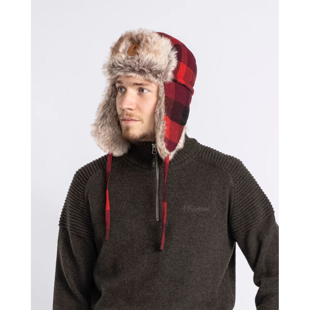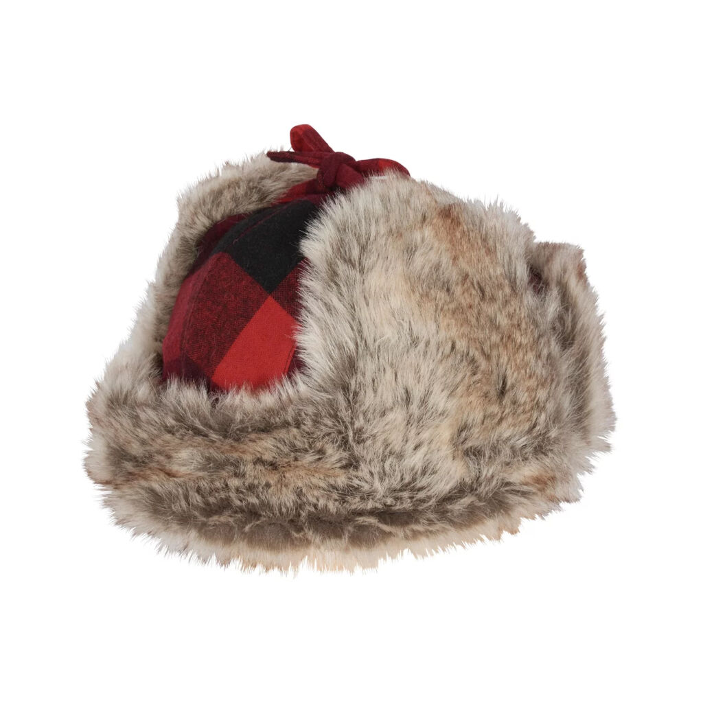 Gewatteerde wintermuts met zachte synthetische bont en oorflappen die omhoog gevouwen en op het hoofd vastgebonden kunnen worden. Komt in een klassiek geruit patroon en heeft een subtiel Pinewood-logo aan de voorkant.