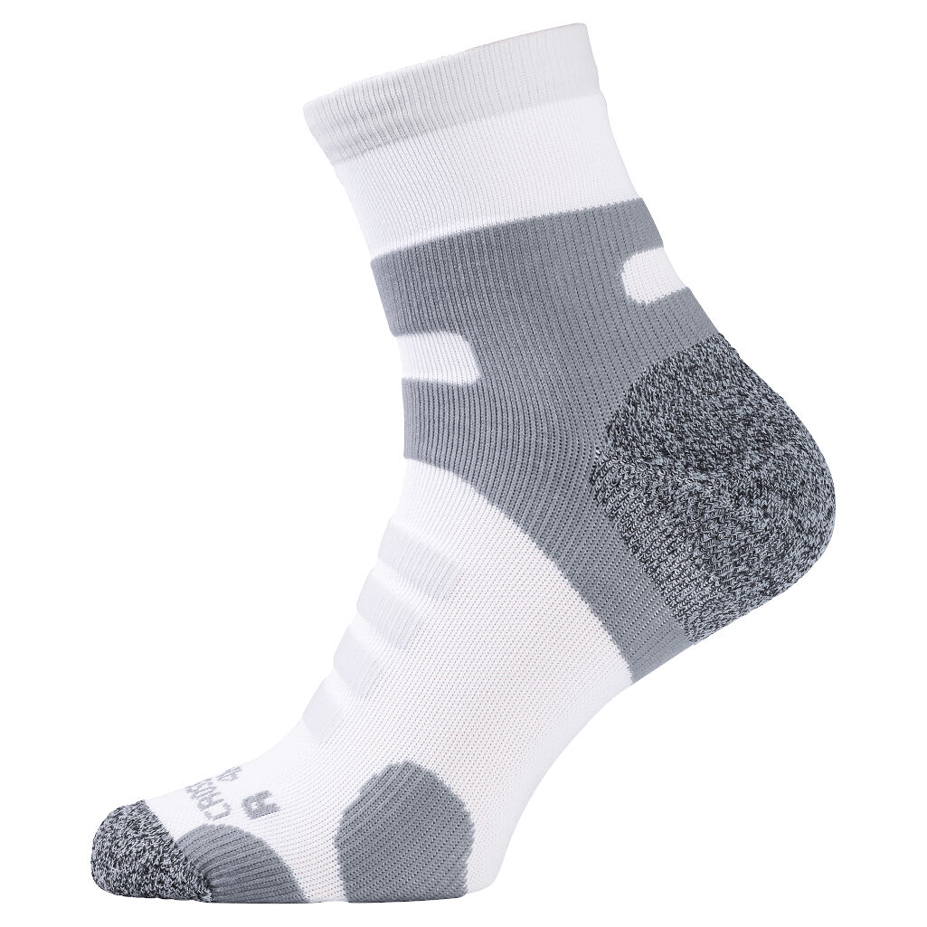 Sneldrogende sok speciaal ontwikkeld voor hardlopen en andere veeleisende activiteiten. Met extra ondersteuning voor de enkel, goede ventilatie en demping rond de enkel en teen verbetert het de ervaring van uw activiteit.
