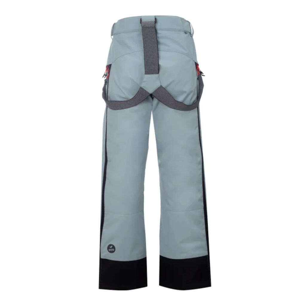 Wind- en waterdichte skibroek gemaakt van gerecycled stretchmateriaal. Verstelbare taille, afneembare bretels, sneeuwvanger en rits langs de hele zijkant voor optimale pasvorm, geschikt voor zowel sneeuwspel als skiën.