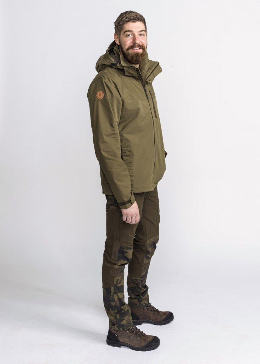 Duurzame outdoorjas van het Zweedse Pinewood met goede stretch, afneembare capuchon met klep en dankzij een luchtige voering een zeer goed comfort. Gewaxte delen over schouders en mouwen, de rest met hoge stretch, geven een jas die je zowel veel als lang kunt gebruiken.
